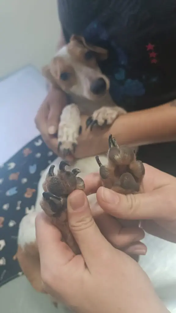 Após o resgate, a ONG Adote um Campeão de 4 Patas assumiu a responsabilidade pelos cães, encaminhando-os para uma clínica veterinária para avaliação e cuidados. Exames preliminares revelaram que os animais apresentavam estado de magreza e leve desidratação. A fêmea, em particular, estava com febre, dor abdominal e possivelmente com trombocitopenia e leucopenia, enquanto o macho mostrava sinais de anemia leve.